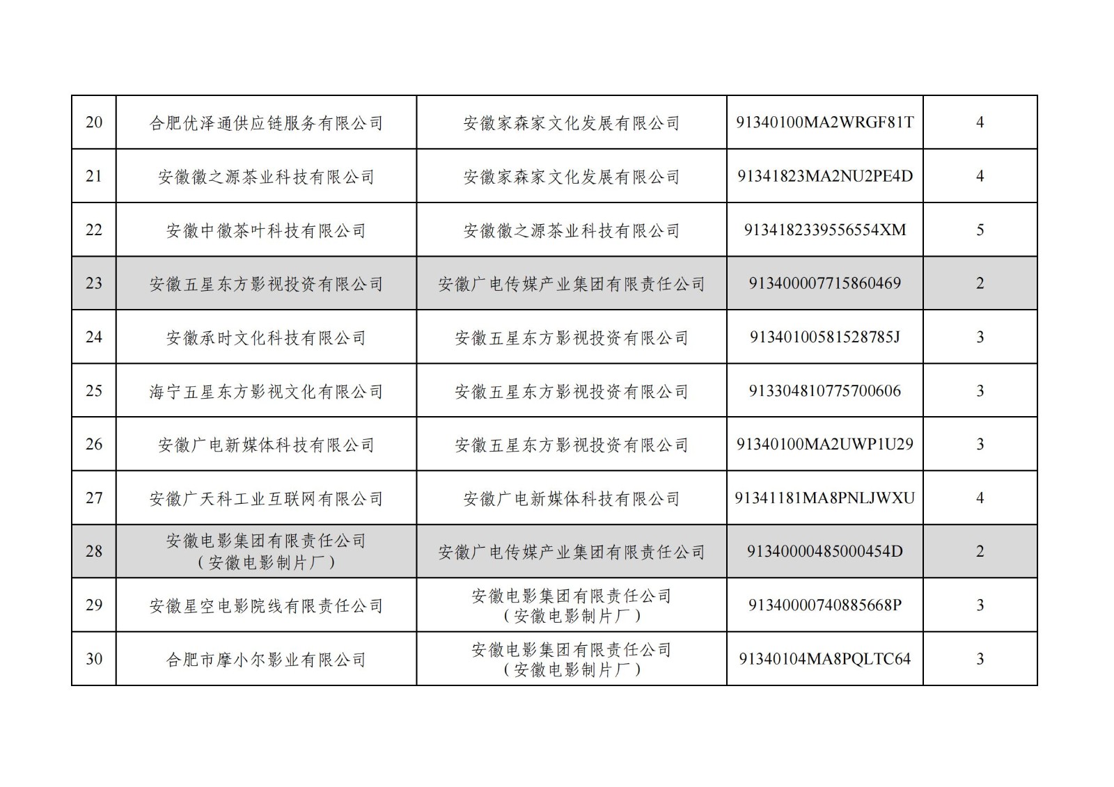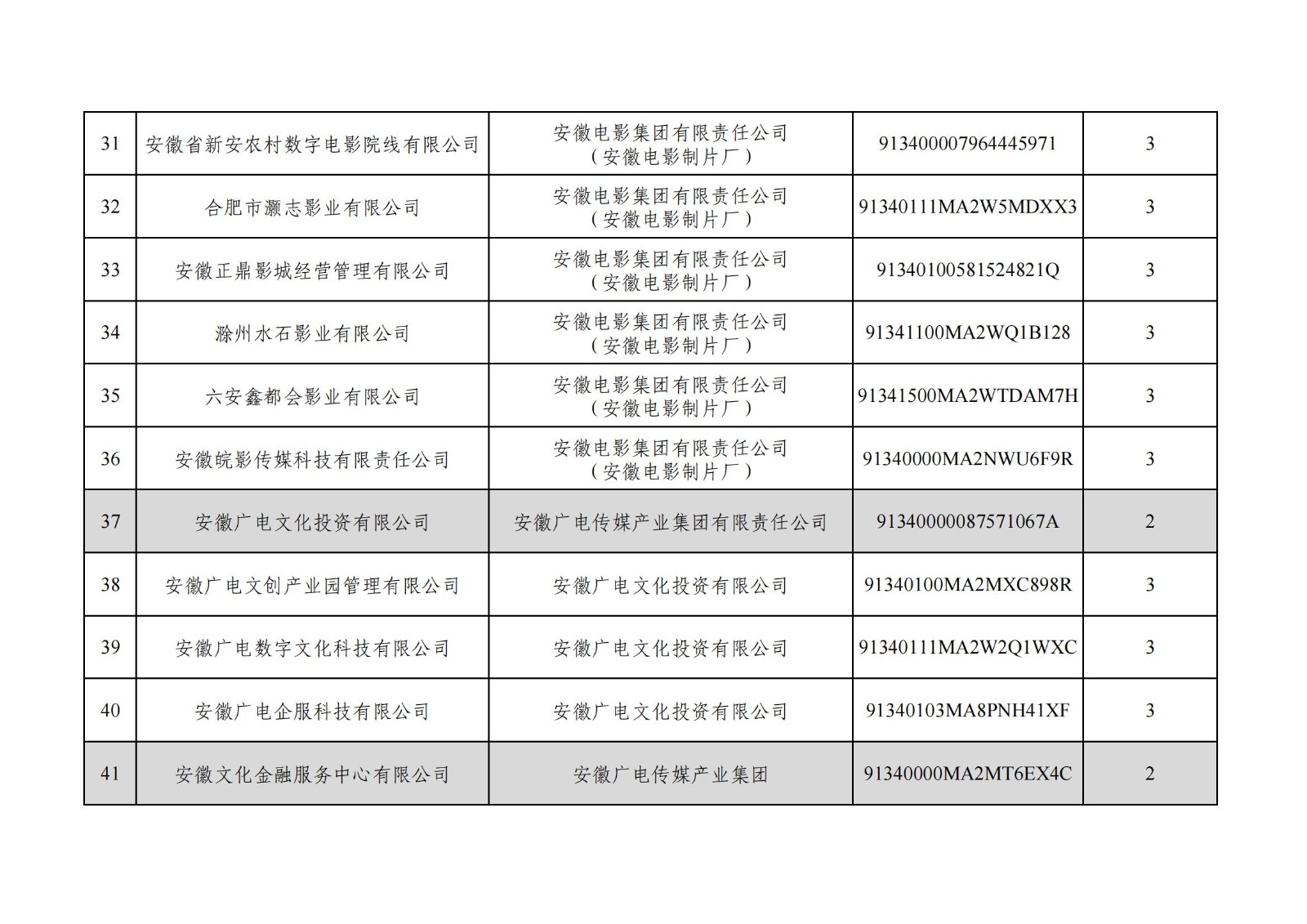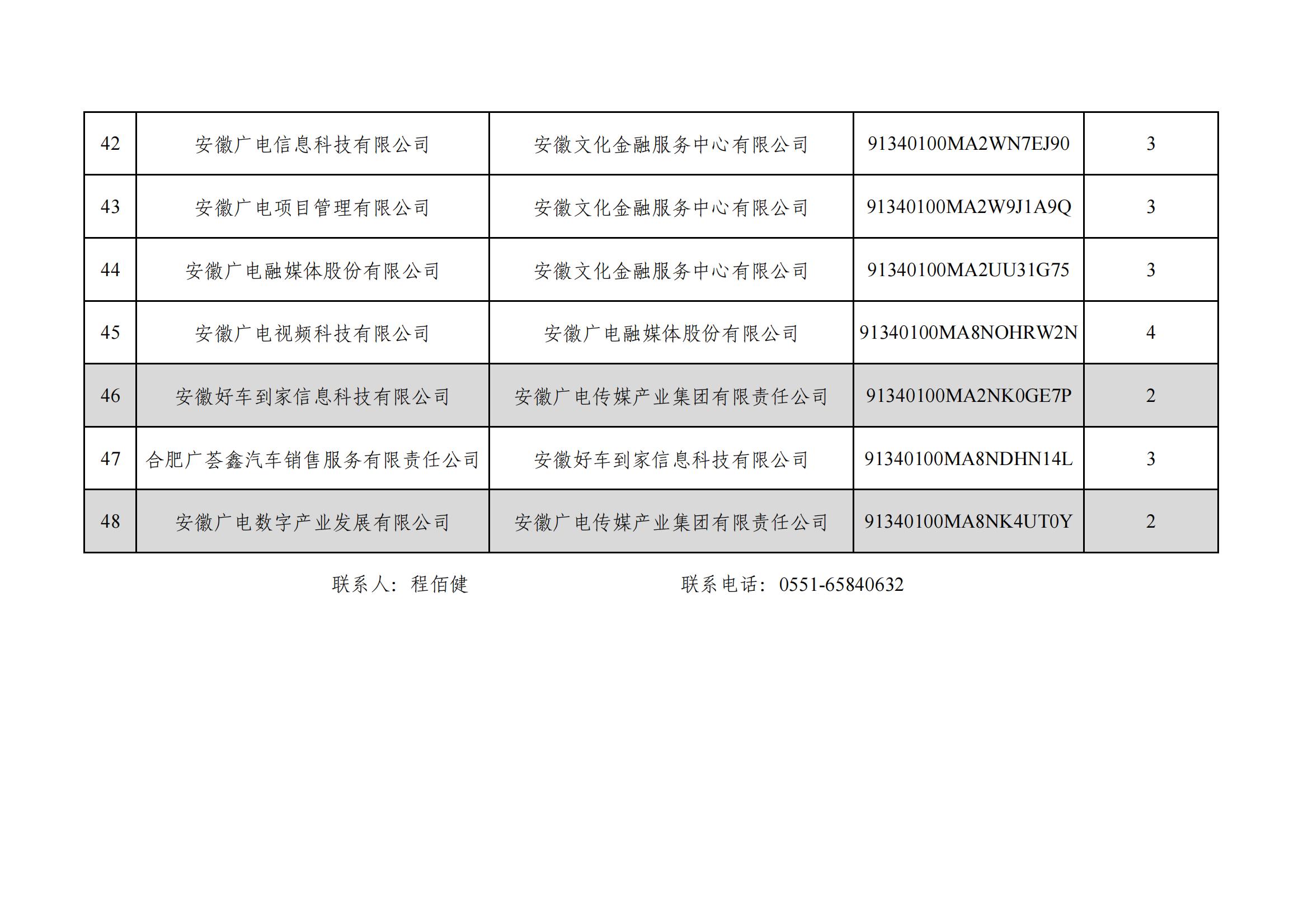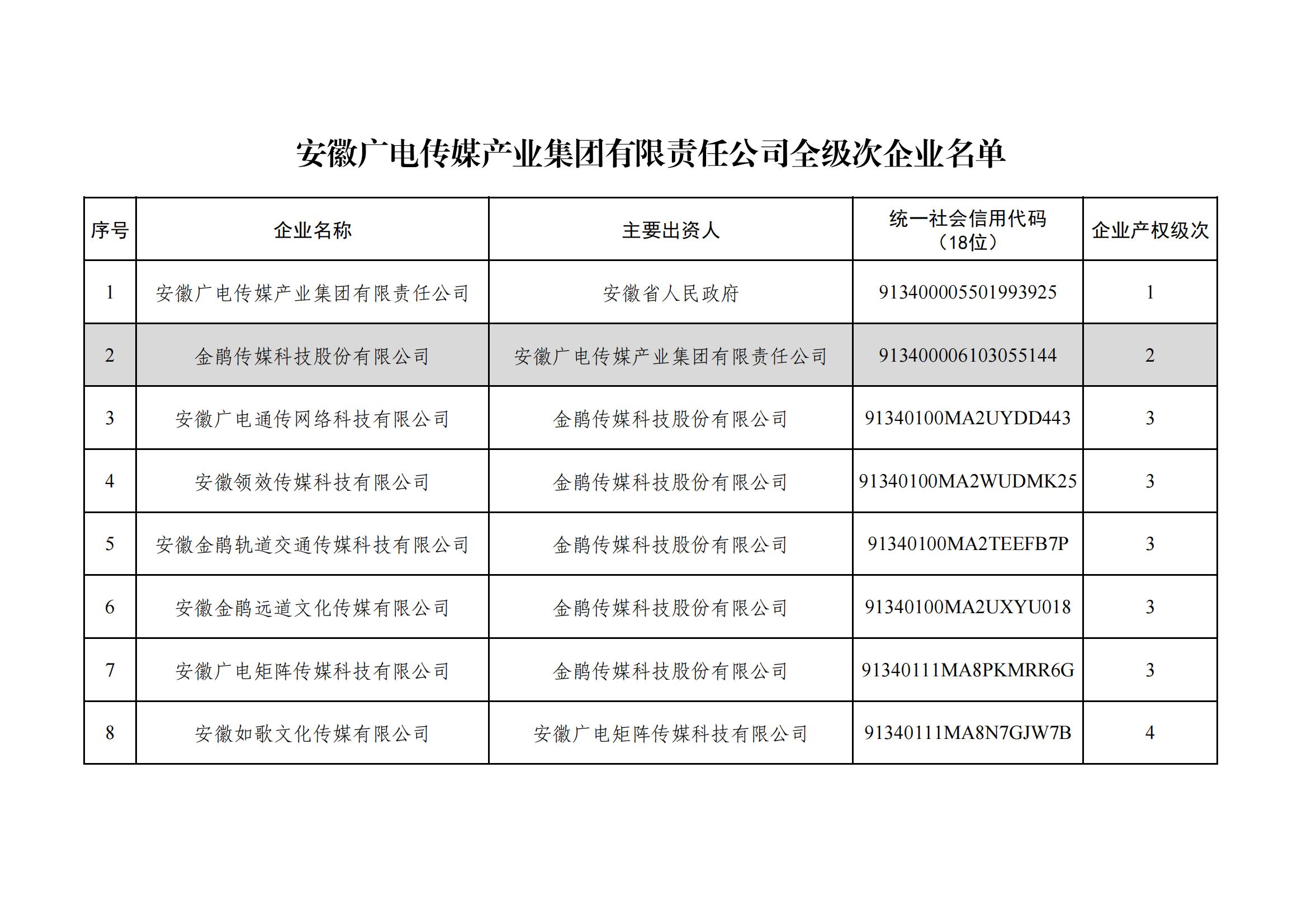 安徽广电传媒产业集团有限责任公司全级次企业名单