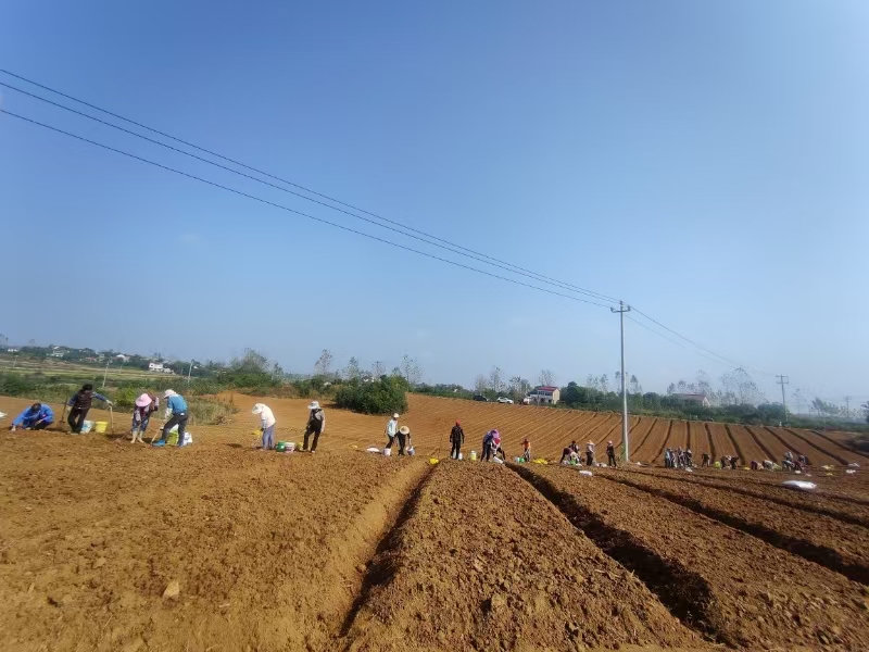 金秋十月,伴随着秋收的喜悦,仓坊村20余亩百合开始种植。村“两委”和工作队率先垂范,不辞辛劳,和村民一起并肩劳作,掰种、浸泡、开沟、施肥、下种...,一道道工序紧张有序、有条不紊进行。送饭、送水,后勤保障工作一点也不能松懈。与天气“赛跑”,日出即作,日落方息,除去吃饭喝水全天不休,经过三天的奋战,终于赶在下雨前全部种植完成,当晚的降雨,是对种植工作的肯定,更是百合后续生长有效的浇灌与滋润。