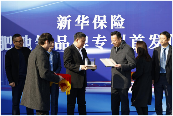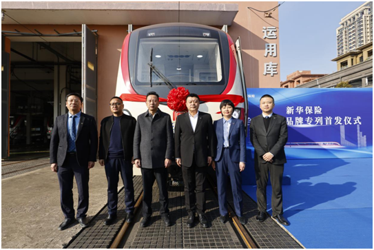 在“新华保险号”地铁专列车头前,王刘生与新华保险安徽分公司党委书记、主要负责人李军先生共同为列车揭幕,宣布“新华保险号”地铁专列正式上线。