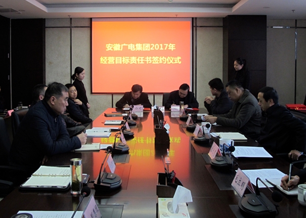 2月22日,集团举行2017年经营目标责任书签约仪式。集团党委书记、董事长聂庆义出席仪式并讲话,集团总经理、副董事长、党委副书记沈天鹰与各公司签订2017年经营目标责任书、安全生产和安全播出责任书,集团党委副书记袁超主持。集团领导班子成员,各公司主要负责同志,集团总部各部门、省传输中心负责同志参加仪式。
