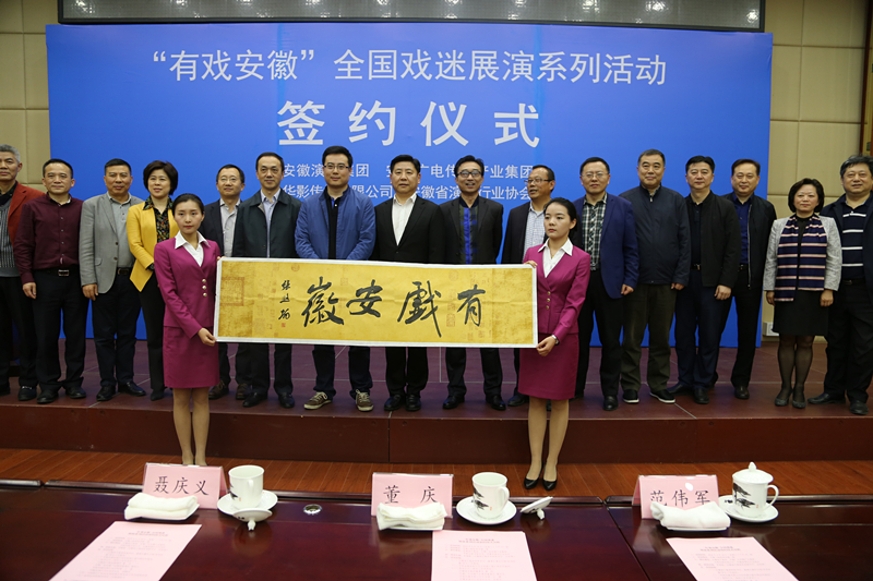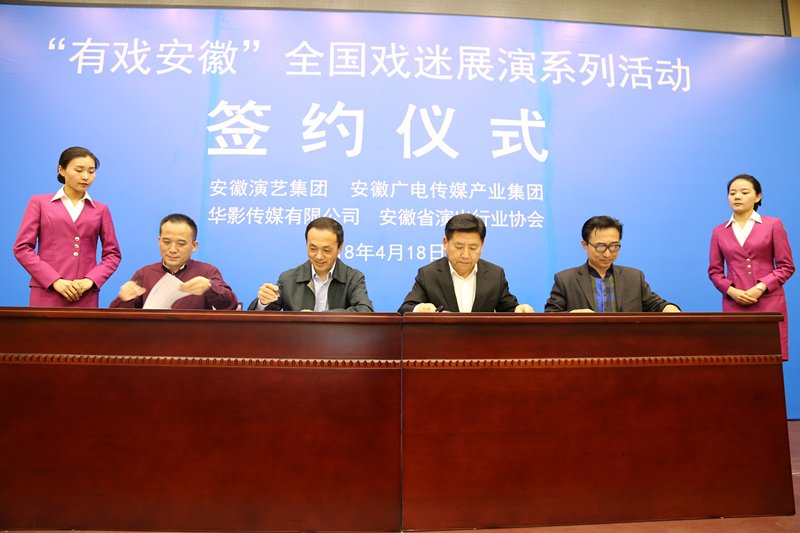 4月18日,“有戏安徽”全国戏迷展演系列活动签约仪式新闻发布会在安徽大剧院举行。安徽广电集团党委书记、董事长聂庆义出席活动,并代表集团与安徽演艺集团、华影传媒有限公司、安徽省演出行业协会签约。集团副总经理胡剑华等参加活动。