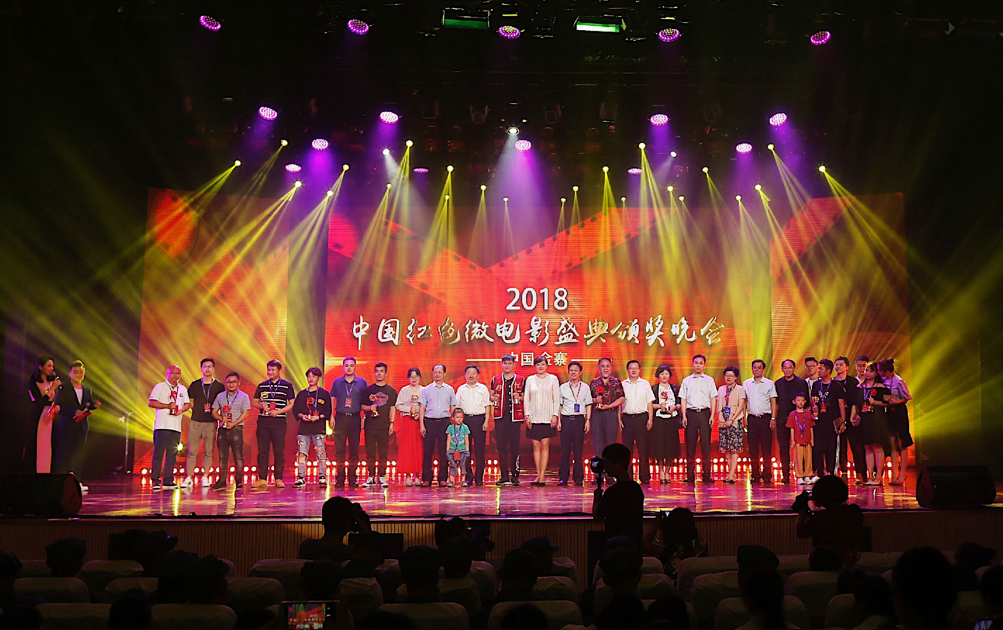 6月27日至28日,由中国电影家协会、安徽省新闻出版广电局、六安市人民政府主办,安徽广电集团、中国电影家协会微电影工作委员会协办,金寨县人民政府、安徽电影集团承办的中国红色微电影盛典颁奖典礼在安徽金寨举行。集团总经理、副董事长、党委副书记沈天鹰,集团党委委员、工会主席、安徽电影集团董事长胡滨出席颁奖典礼。来自影视界的艺术家、学者和全国各地微电影协会负责人、入围作品主创代表、微电影爱好者及金寨各界人士共计1000多人参加颁奖典礼。晚会由安徽著名导演耿小强执导,著名主持人周群、阿进担任主持,安徽广播电视台海豚TV、金寨电视台全程直播,安徽广播电视台综艺频道录制播出。