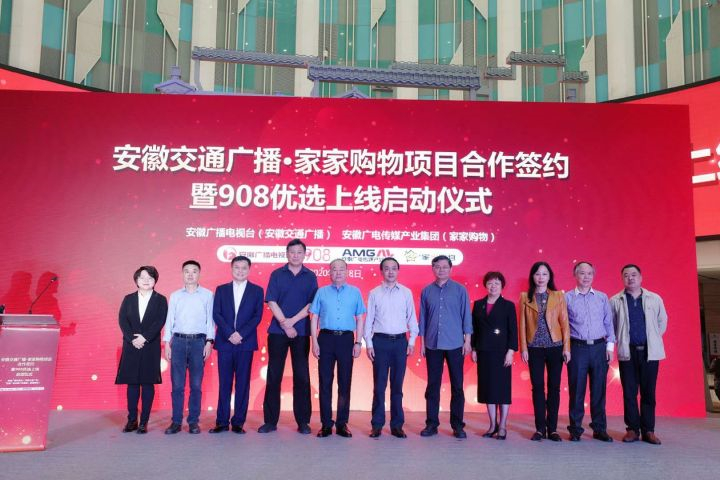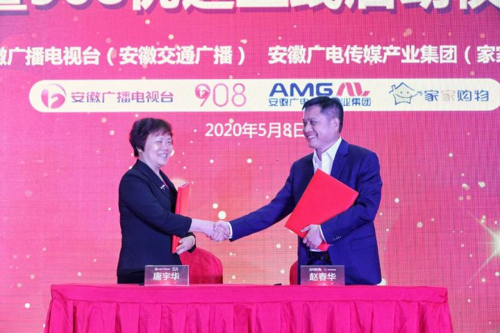 5月8日上午,安徽交通广播·家家购物项目合作签约暨安徽交通广播官方商城908优选上线启动仪式在安徽广播电视台举行。集团党委书记、董事长李树,安徽广播电视台党委书记、台长、总编辑聂庆义出席仪式并致辞。集团党委委员、董事、常务副总经理黄伟,安徽广播电视台党委委员、副台长王云松分别为八家战略供应商授牌。家家购物公司党委书记、董事长赵春华与安徽广播电视台交通广播副总监唐宇华代表双方签订战略合作框架协议。