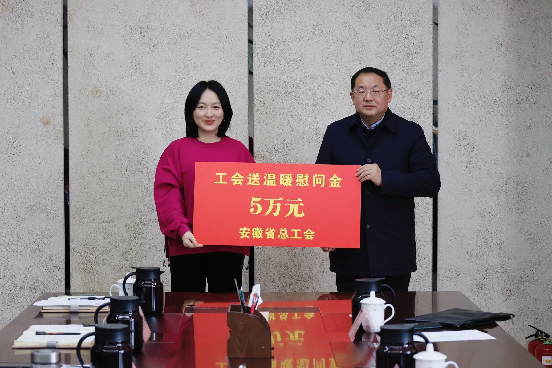 新春将至,岁寒情暖。1月23日,安徽省总工会党组成员、副主席胡少石带领省直机关工会主任李宗军,省教科文卫体工会主席、一级调研员吴海明,省教科文卫体工会二级主任科员张平平来集团开展2024年“两节”送温暖慰问活动。集团党委书记、董事长周玉,集团党委副书记、董事王刘生,集团党委委员、工会主席虞咏等参加慰问活动。