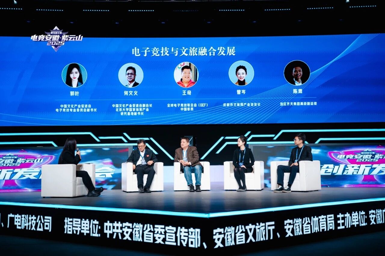 嘉宾们聚焦“电竞+”跨界融合新范式发表洞见。中国文化产业促进会副会长、北京大学国家体育产业研究基地秘书长何文义从商业模式角度,阐释电竞赛事对缓解旅游淡季、提升游客复游率和目的地影响力的独特作用。当红齐天集团高级副总裁陈肃结合前沿案例,指出VR/AR与人工智能正推动沉浸式电竞文旅体验从概念走向现实。成都市文旅局产业处处长曾岑以成都实践为例,展现本土文化IP与电竞赛事深度融合的可行路径。全球电子竞技联合会委员王奇立足安徽本土,就徽文化符号转化、叙事方式创新与年轻化表达等方面深度探讨。