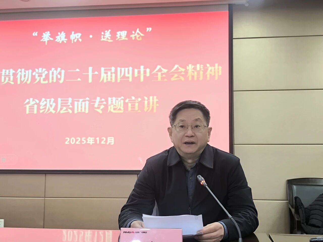 为深入学习贯彻党的二十届四中全会精神,根据省委“举旗帜·送理论”省级层面专题宣讲活动安排,12月23日,集团举办党的二十届四中全会精神宣讲报告会。省委讲师团专家库高端宣讲专家作《擘画“十五五”规划宏伟蓝图 为基本实现社会主义现代化接续奋斗》专题辅导报告。集团党委书记、董事长周玉主持会议并讲话。