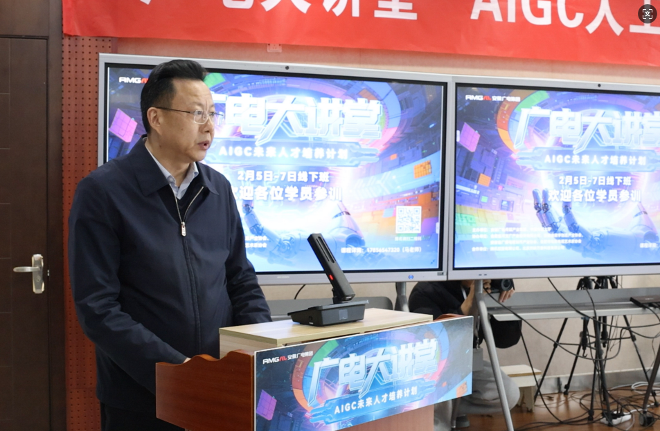 2月5日,由安徽广电传媒产业集团主办的“广电大讲堂”AIGC人工智能技能培训在合肥开班。集团党委书记、董事长周玉作开班动员讲话。集团党委副书记、董事王刘生主持开班式。来自全省影视、数字媒体、文旅广告等行业的业务骨干、企业负责人以及集团相关板块员工共40余名学员参加培训。
