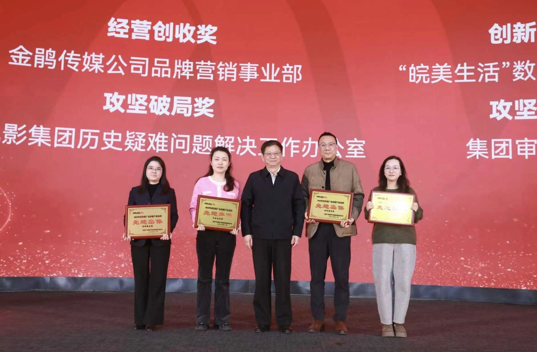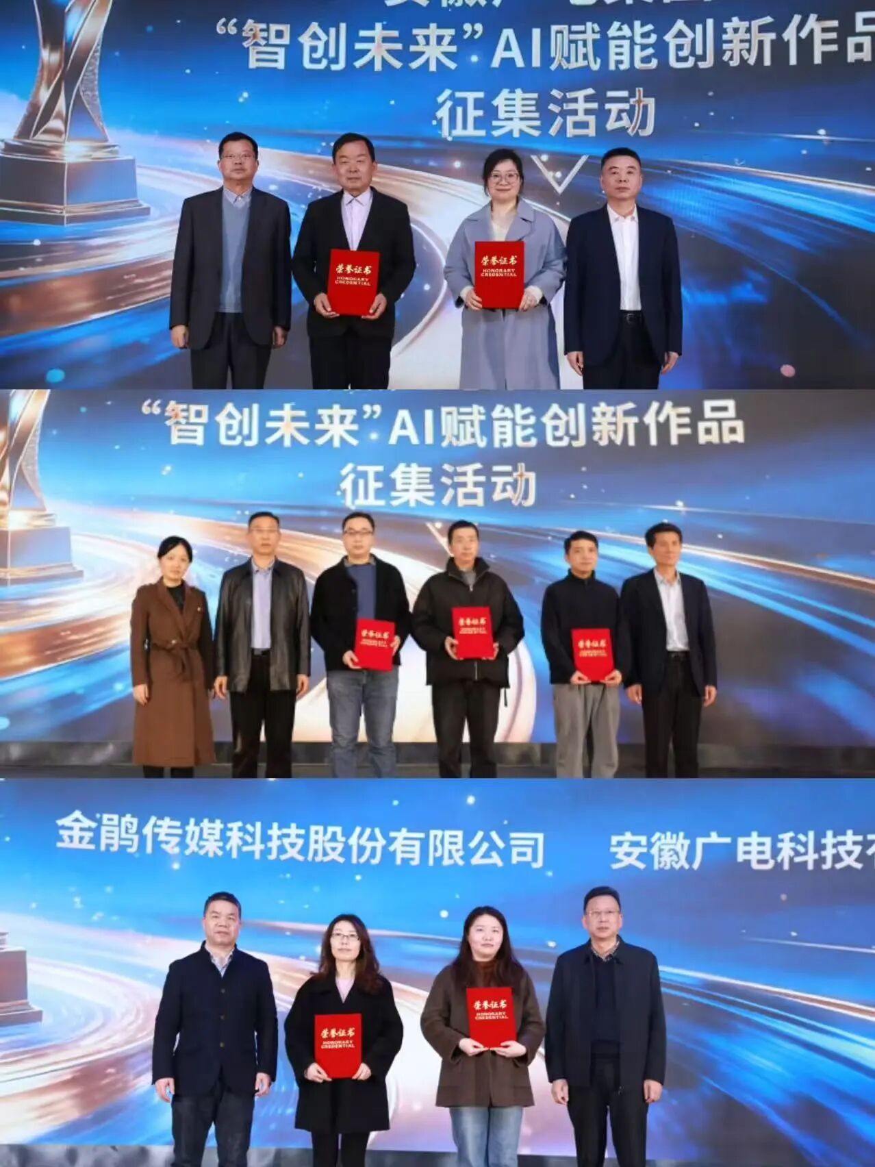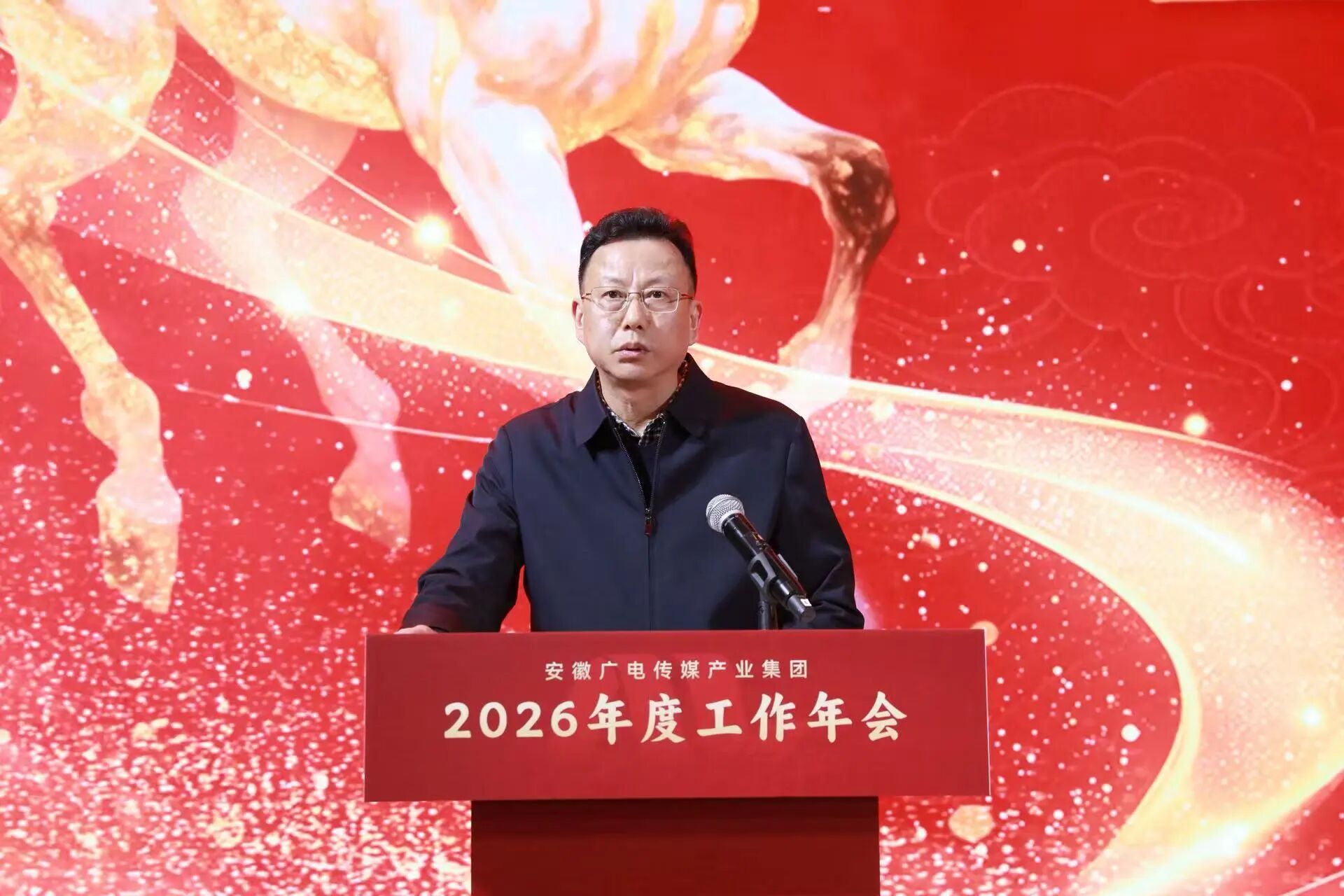 会上,金鹃传媒公司、安徽电影集团、广电科技公司、紫云传媒公司负责同志作2026年度重点项目路演。会议还举行了集团“为梦想奋斗、为幸福打拼”主题呈现演出,集团“智创未来”AI赋能创新作品征集活动优秀作品集中展示,数字主持人精彩亮相,来自各单位的干部职工自编自演了一个个充满创意与科技感的文艺节目,展现了昂扬的精神面貌。