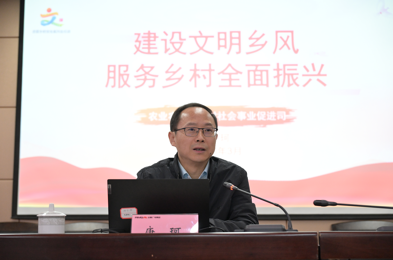 为深入学习贯彻党的二十届四中全会精神,扎实开展树立和践行正确政绩观学习教育,精准把握乡村全面振兴战略要求,切实发挥国有文化企业服务“三农”工作的使命担当,3月20日上午,安徽广电集团大讲堂举行第十五讲。农业农村部农村社会事业促进司司长唐珂作《建设文明乡风 服务乡村全面振兴》专题辅导报告。集团党委书记、董事长周玉出席,集团党委副书记、董事王刘生主持,集团其他领导班子成员和农业农村部农村社会事业促进司及省农业农村厅相关处室人员参加。