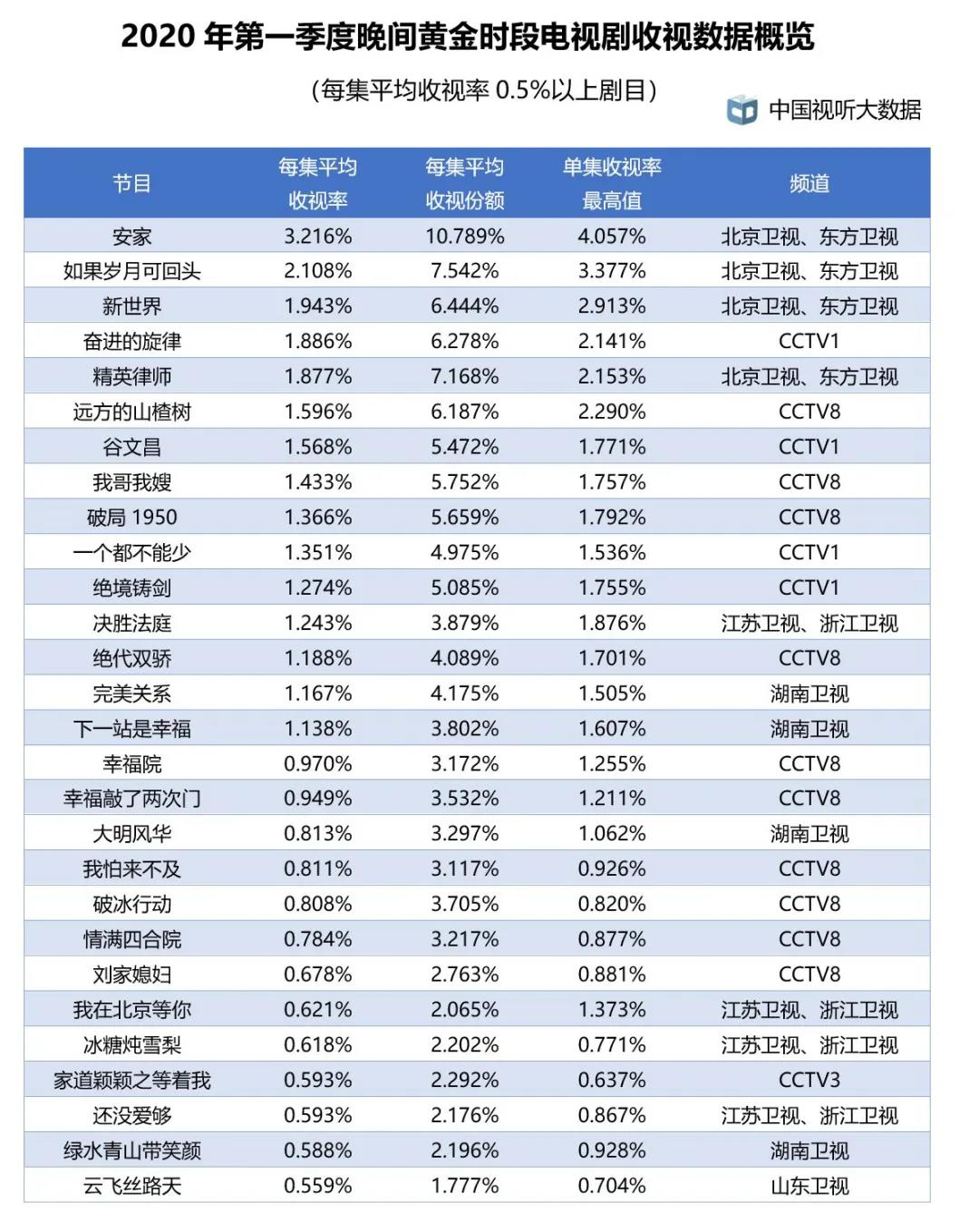 据“中国视听大数据”(CVB)统计,2020年第一季度相较2019年第四季度全国有线电视和IPTV用户日均收视总时长上涨22.7%,每日户均收视时长增长半小时。在此期间,8场晚会,24档综艺节目,15部黄金时段电视剧,15部121集纪录片收视率超过1%。
