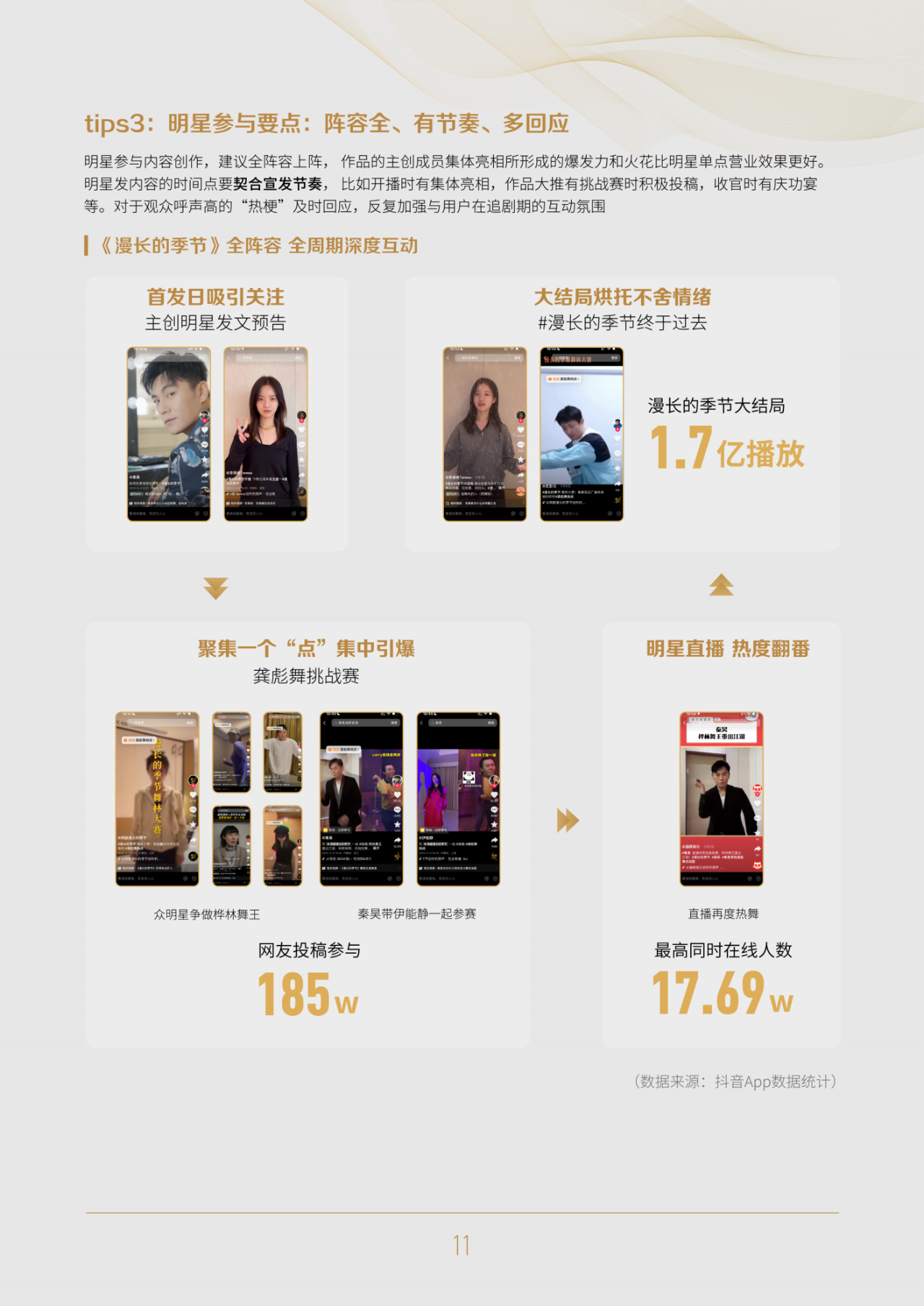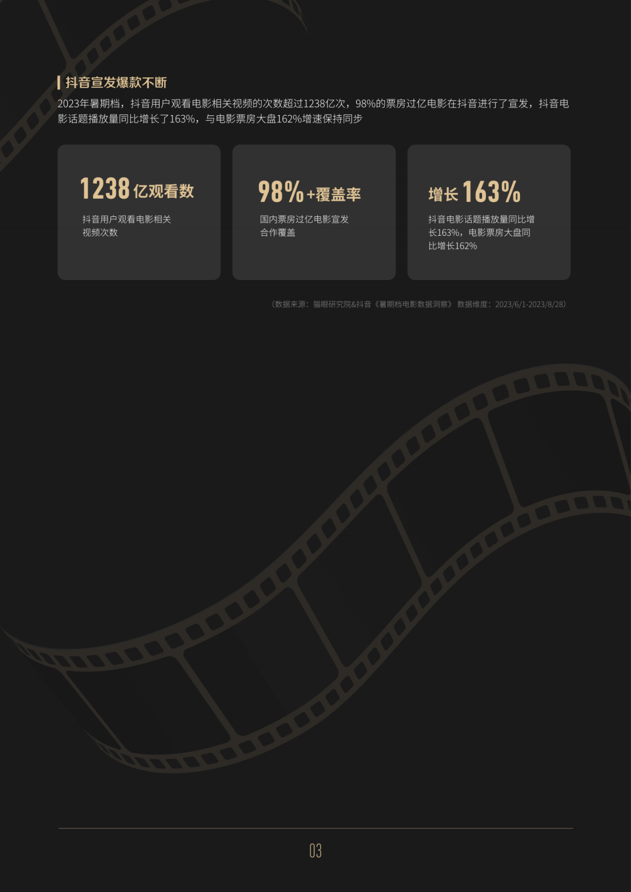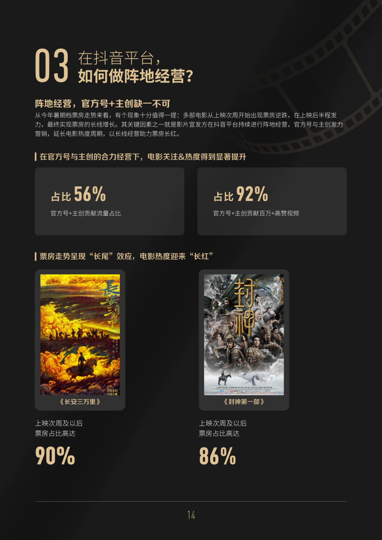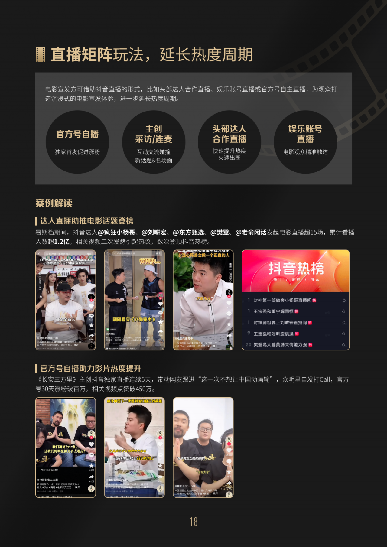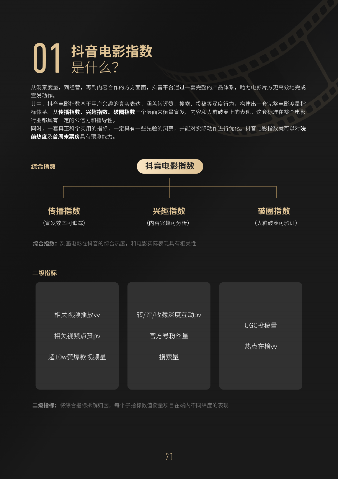 近日,抖音发布《抖音电影宣发方法指南》与《抖音剧集宣发方法指南》。《抖音电影宣发方法指南》围绕内容种草、阵地经营两个核心方法,基于抖音电影指数及相应产品,为行业提供电影宣发新解法。《抖音剧集宣发方法指南》通过对爆款剧集宣发经验的梳理,外放剧集宣发方法论,并发布抖音剧集指数,助力更多优质剧集实现内容与商业价值的突围。
