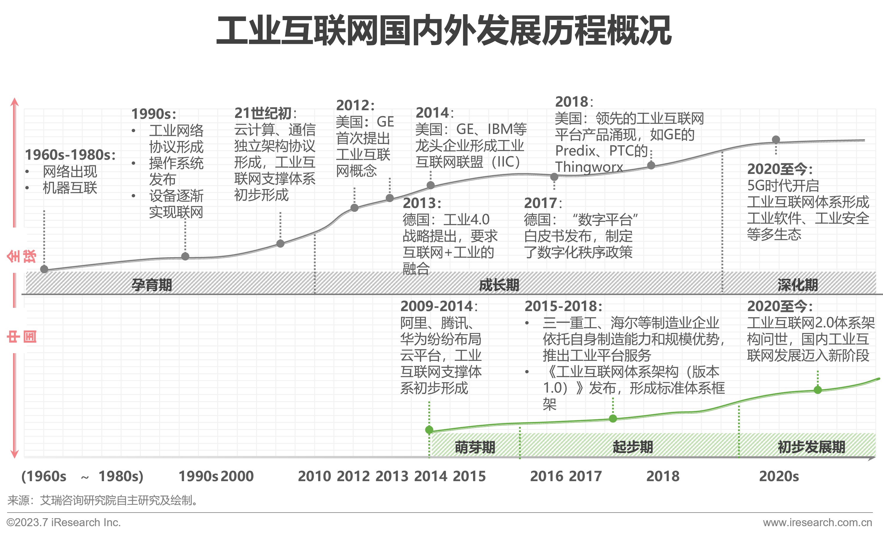 工业互联网在工业网络、云计算、现代通信等基础上发展而来,于21世纪10年代初步形成。放眼全球,不同国家由于工业基因、工业技术的积淀不同,工业互联网的发展路径也不尽相同。美国坚持市场化原则,工业互联网主要由巨头企业和资本主导;德国更加注重产品质量和技术,围绕整体的工业形态打造展开;中国则是在云平台的基础上,由政策领航助推,亦步亦趋前行,目前仍处于初步发展期。