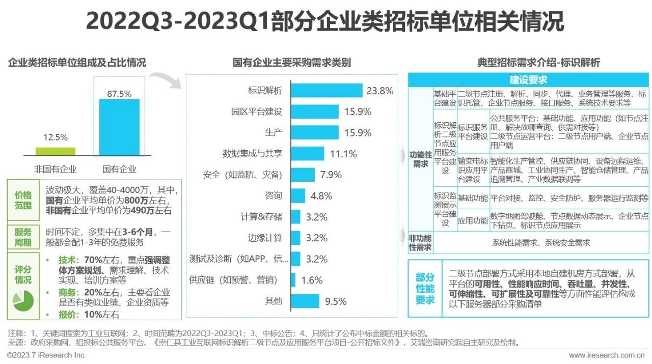 从国有企业采购的主要类别看,标识解析、园区平台建设、生产等是TOP3的需求点,与其承当的双重任务息息相关。