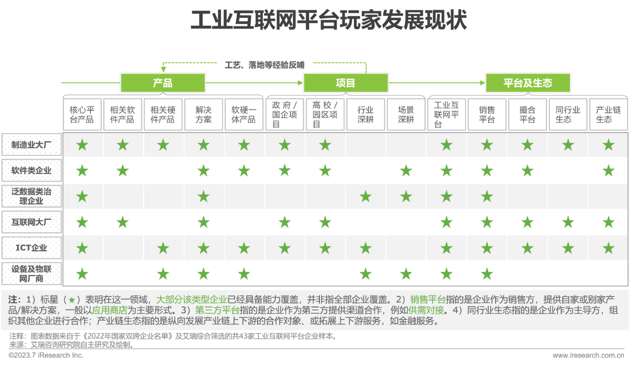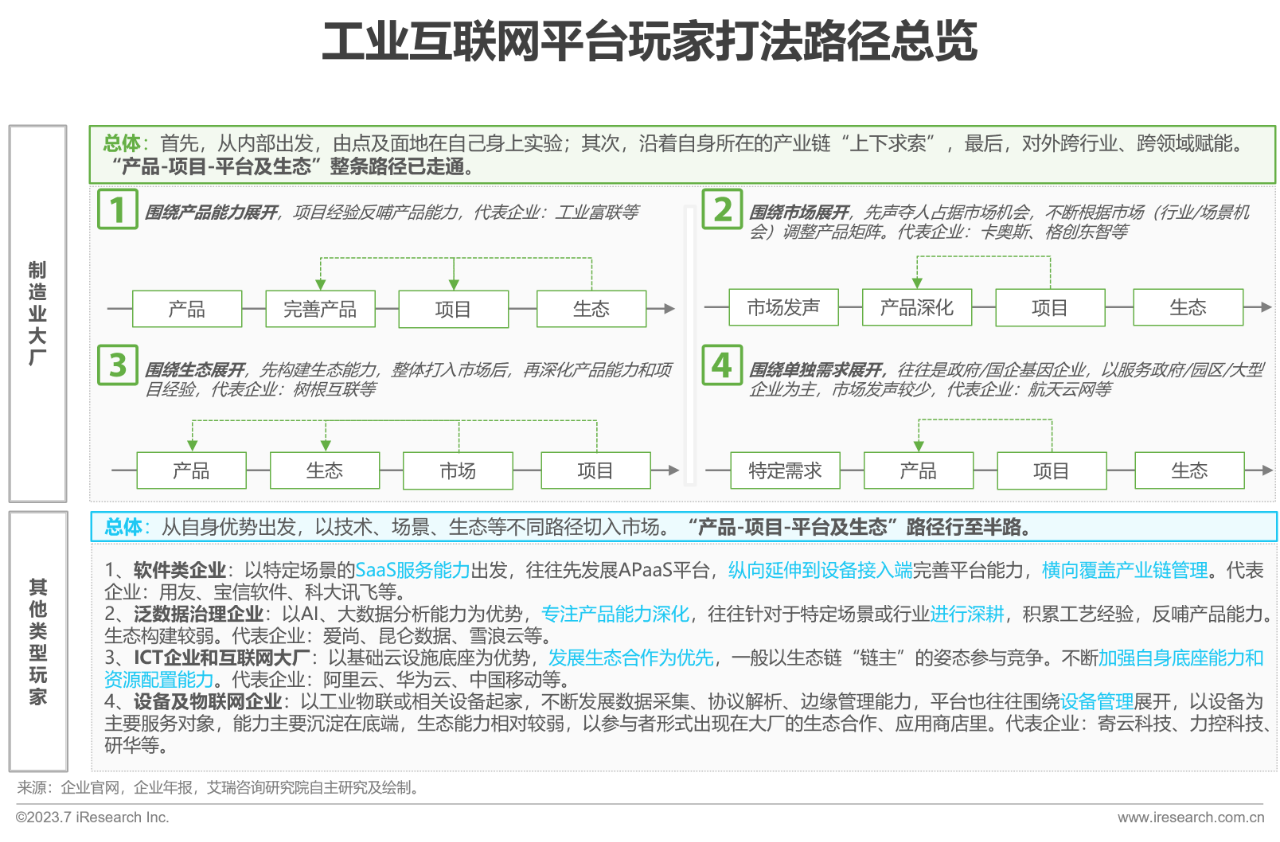 平台玩家总体打法路径呈现为“产品-项目-平台及生态”,制造大厂已经走通,其他类型玩家现行至半路