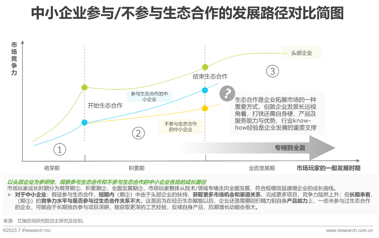 生态合作可以帮助中小企业短期提升竞争力,但长期增长还是依赖于产品及服务优势、行业know-how经验等因素