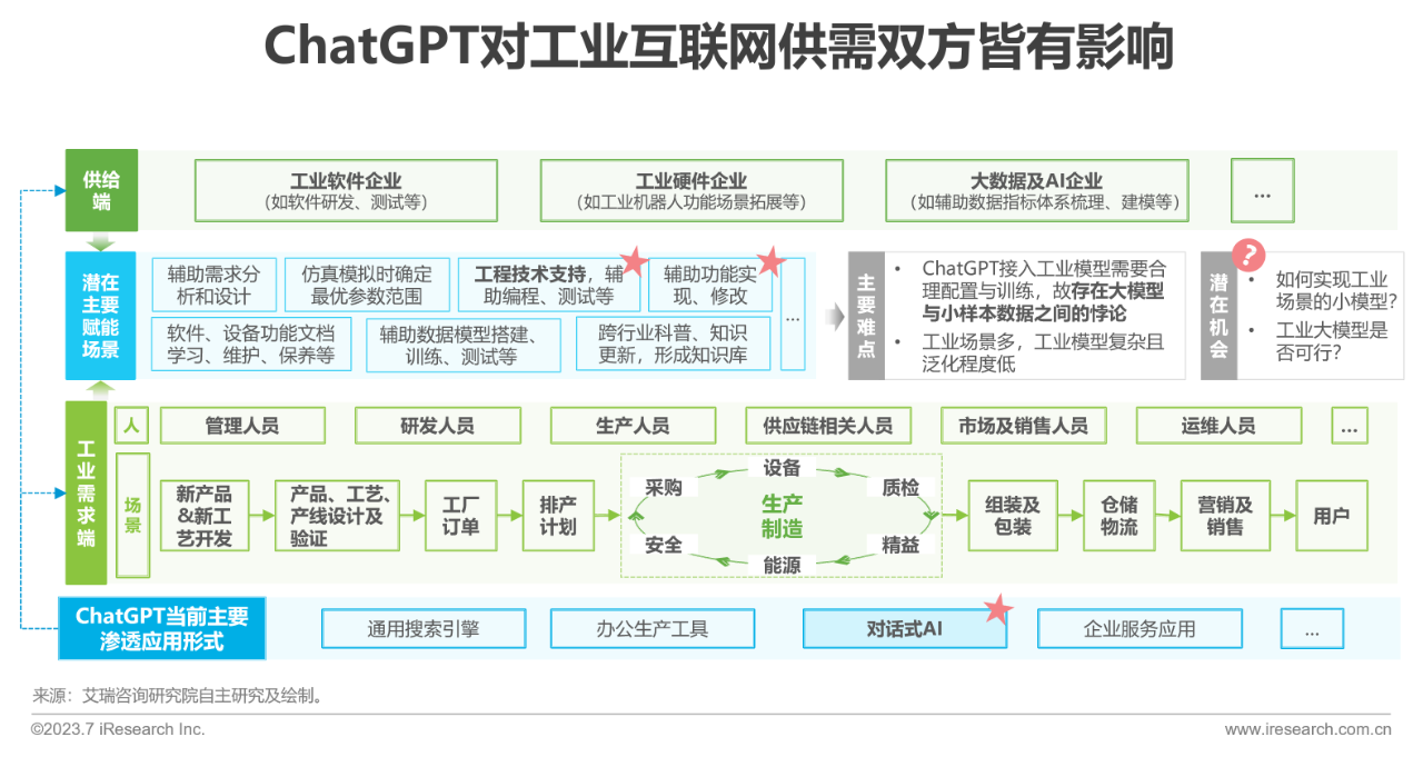 ChatGPT在消费端的应用序幕已经拉开,但在工业端的应用,现阶段可畅想但具体应用还需进行深度模型改造、配置与训练