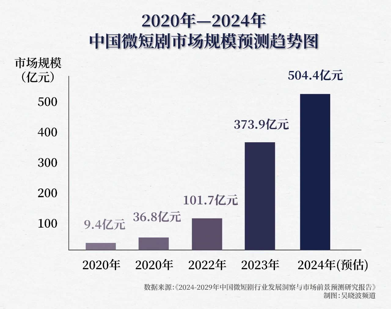 其中,根据中商产业研究院的研报,2024年国内短剧规模预估将超过504.4亿元,艾媒咨询的数字更大胆,它认为到2027年,微短剧市场规模将达到1006.8亿元,近四年复合增速达28.1%。