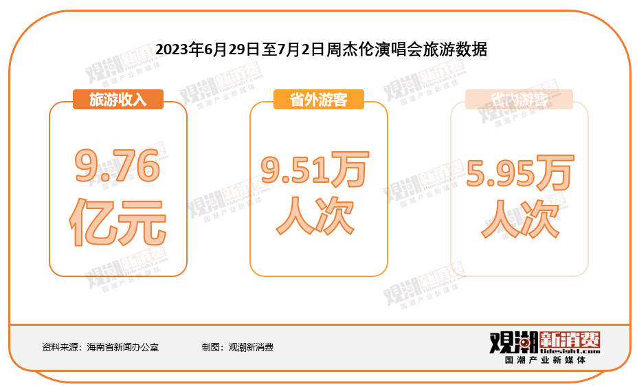 2023年6月29日至7月2日,周杰伦在海口连续举办4场演唱会,仅4天时间为海口经济增收9.76亿元,9.51万人次省外游客齐聚海南。